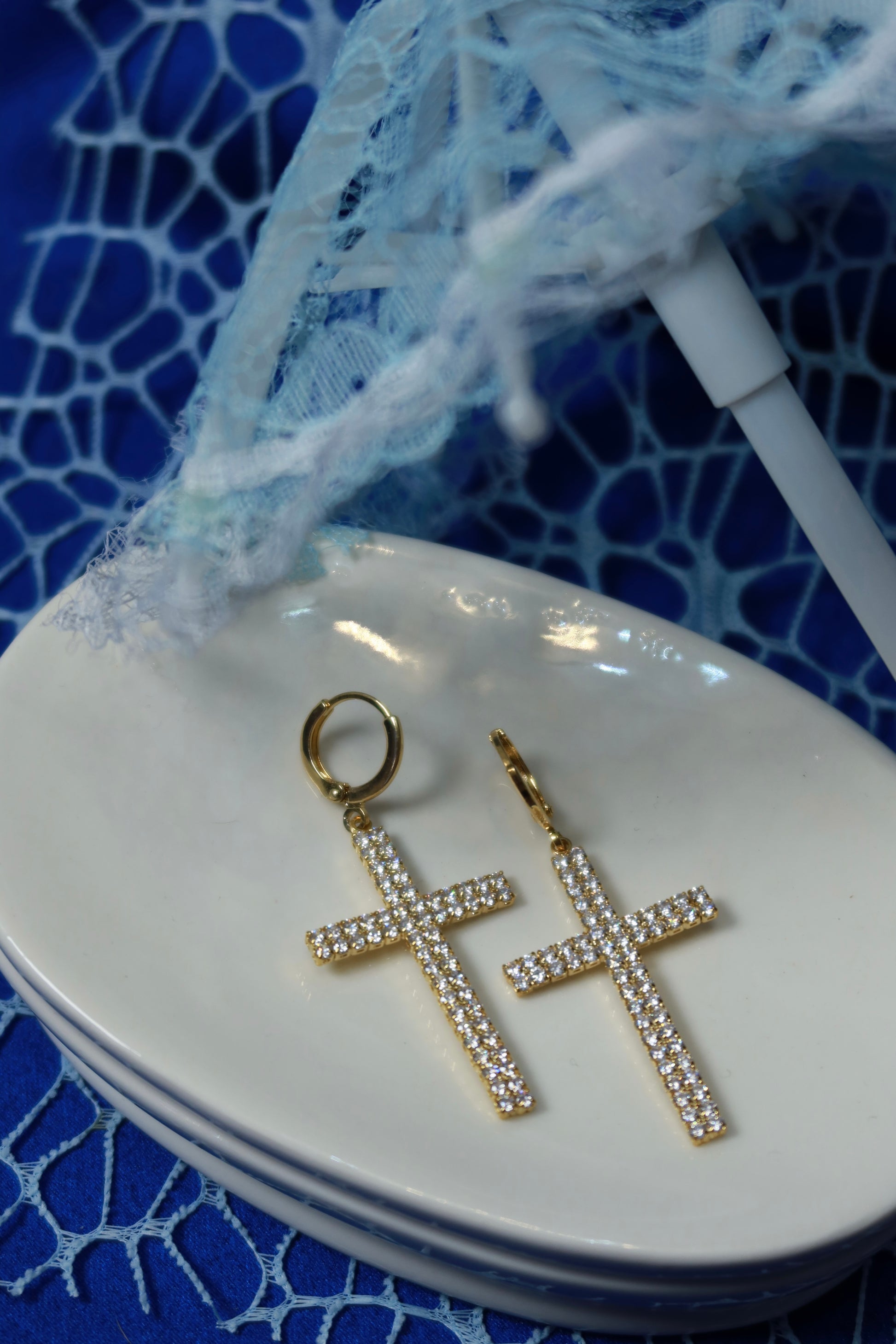 Questi orecchini a forma di croce uniscono eleganza e raffinatezza, ideali per chi desidera un accessorio discreto ma d'impatto.