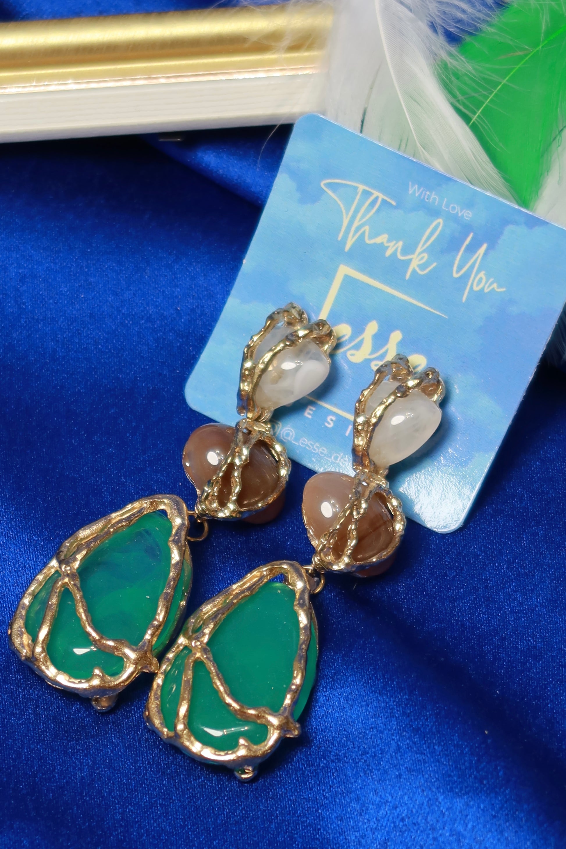 Questi raffinati orecchini verdi aggiungono un tocco di eleganza sofisticata a qualsiasi look.